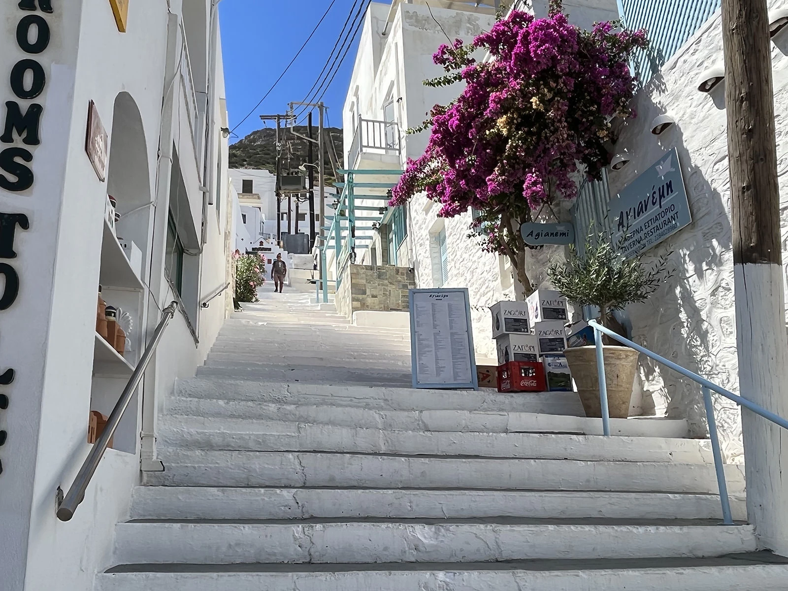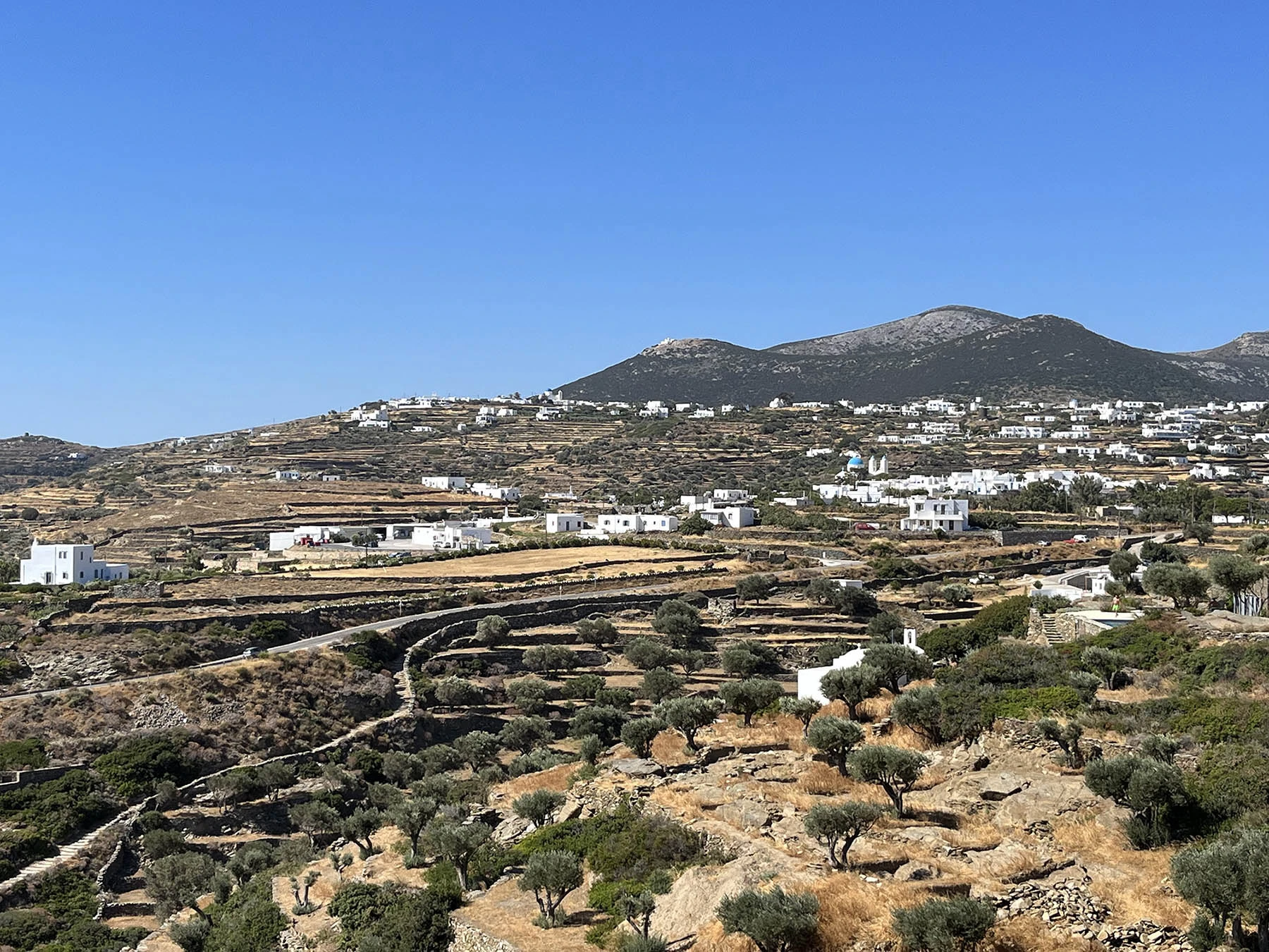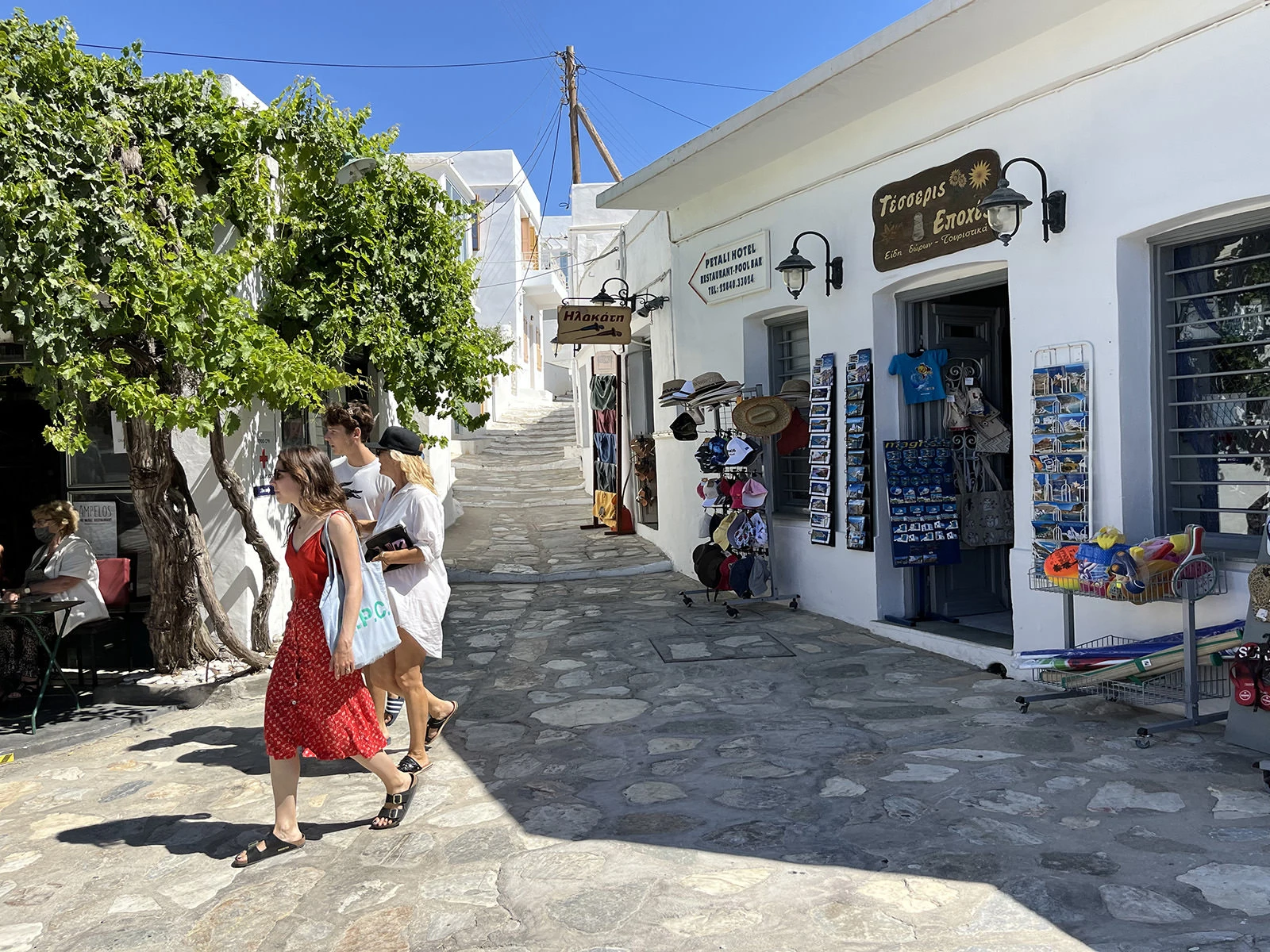 The lovely steno (pedestrian main street) contains many buildings dating from the seventeenth century, all in whitewashed Cycladic style, and is lined with restaurants, cocktail bars, and boutiques, interspersed with historic churches. Some restaurants and bars have roof terraces where you can enjoy your favorite drink under the moonlit sky, gazing out over the houses to the surrounding hills and sea beyond.